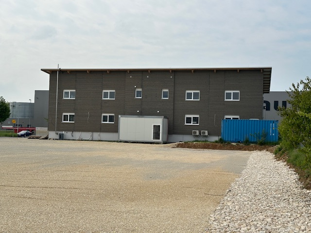 Dieser modernste Containerbürokomplex steht passend in unmittelbarer Nähe zum Contaierbahnhof im Ulmer Norden.