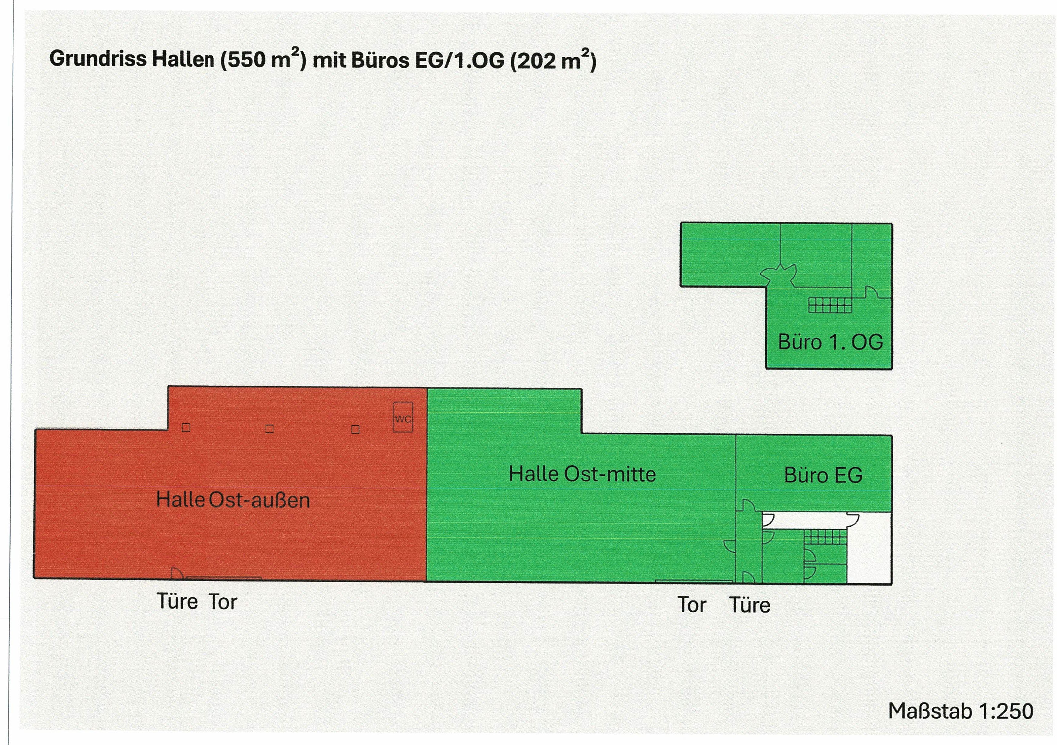 * WC und 1 Teeküche im Bürobereich plus 1 WC im Hallenbereich