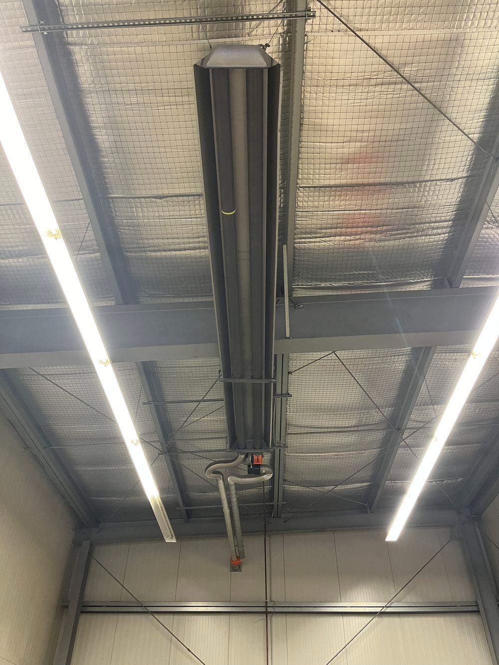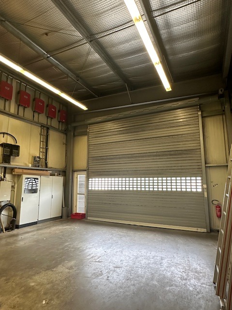 * 288 qm Lagerfläche mit großem Rolltor beheizt mittels Dunkelstrahler