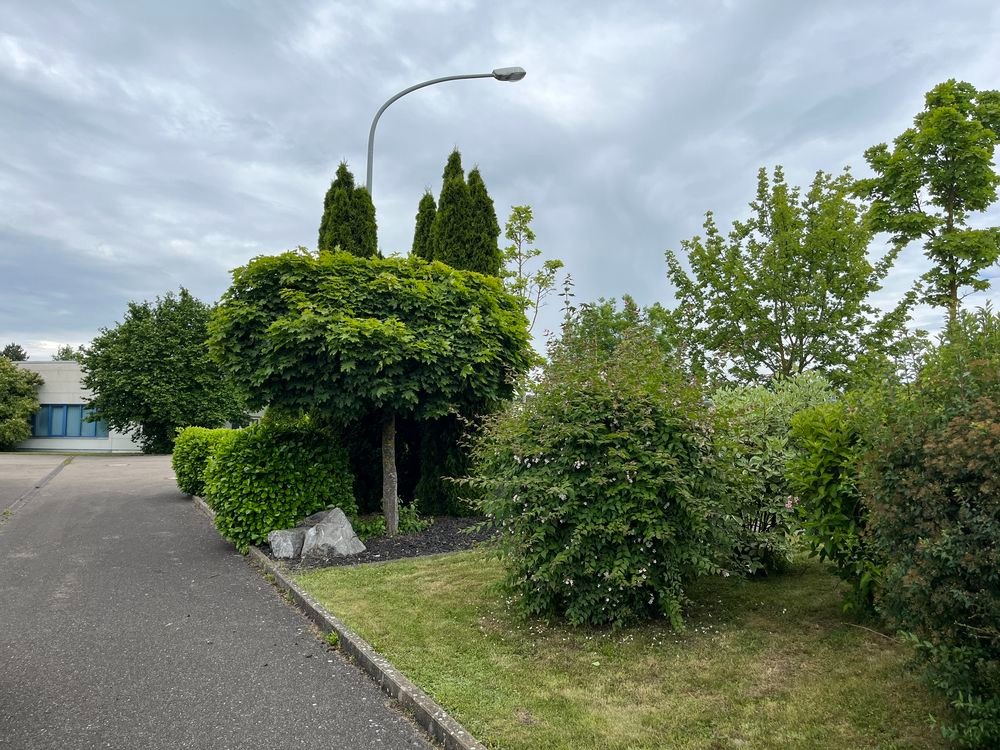 Die Außen-Grünanlagen sind ansprechend und sehr gepflegt und bieten außerdem zusätzlich genügend Platz für ca. 30 Mitarbeiter Kfz-Stellplätze.