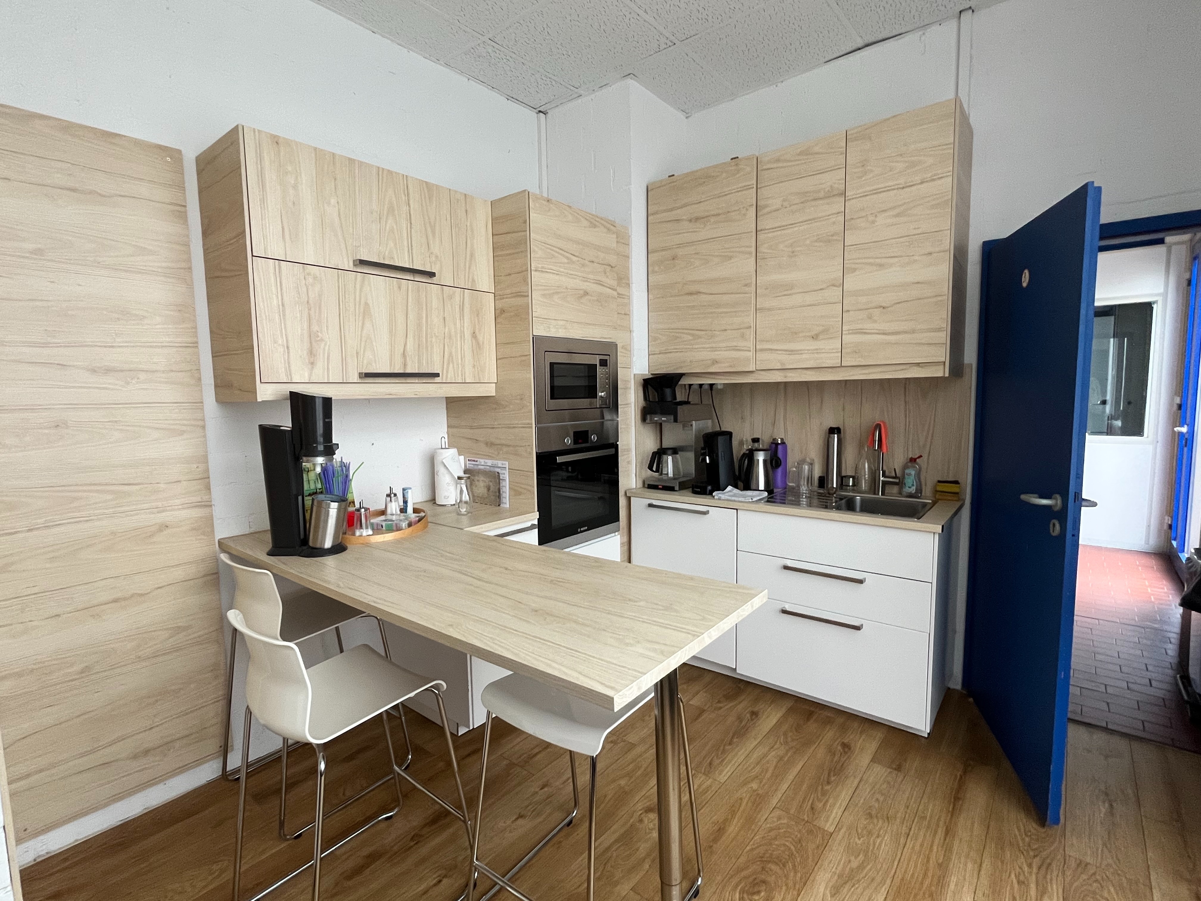 Die voll ausgestattete Küche neben einer einladenden Terrasse sind für kurze kreative Breaks oder einfach zur Erholung bestens geeignet. Im großzügigen Eingangsbereich stehen drei einzel Räume für Videocalls, Besprechungen oder kleinere Meetings zur Verfügung.